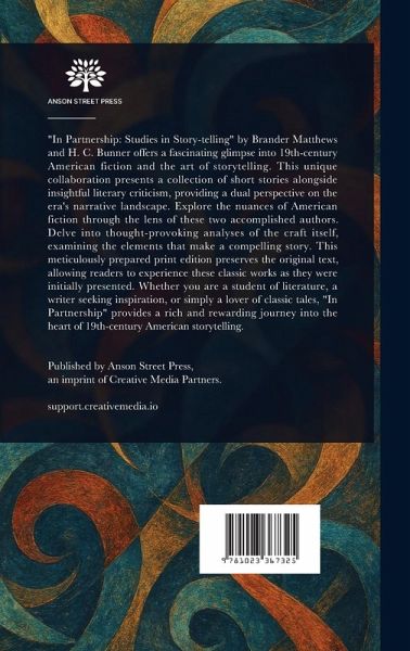 "In Partnership: Studies in Story-telling" by Brander Matthews and H. C. Bunner offers a fascinating glimpse into 19th-century American fiction and the art of storytelling. This unique collaboration presents a collection of short stories alongside insightful literary criticism, providing a dual perspective on the era's narrative landscape. Explore the nuances of American fiction through the lens of these two accomplished authors. Delve into thought-provoking analyses of the craft itself, examining the elements that make a compelling story. This meticulously prepared print edition preserves the original text, allowing readers to experience these classic works as they were initially presented. Whether you are a student of literature, a writer seeking inspiration, or simply a lover of classic tales, "In Partnership" provides a rich and rewarding journey into the heart of 19th-century American storytelling. This work has been selected by scholars as being culturally important, and is part of the knowledge base of civilization as we know it. This work is in the public domain in the United States of America, and possibly other nations. Within the United States, you may freely copy and distribute this work, as no entity (individual or corporate) has a copyright on the body of the work. Scholars believe, and we concur, that this work is important enough to be preserved, reproduced, and made generally available to the public. We appreciate your support of the preservation process, and thank you for being an important part of keeping this knowledge alive and relevant.