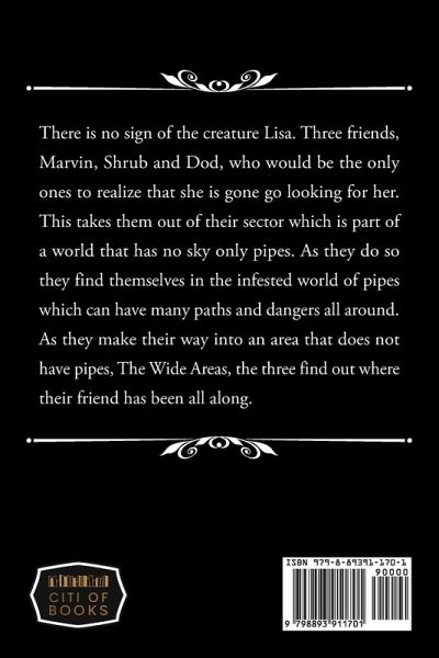 There is no sign of the creature Lisa. Three friends, Marvin, Shrub and Dod, who would be the only ones to realize that she is gone go looking for her. This takes them out of their sector which is part of a world that has no sky only pipes. As they do so they find themselves in the infested world of pipes which can have many paths and dangers all around. As they make their way into an area that does not have pipes, The Wide Areas, the three find out where their friend has been all along.