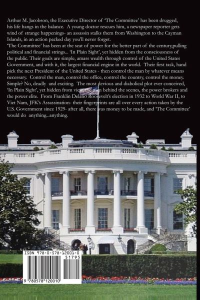 Arthur M. Jacobson, the Executive Director of 'The Committee' has been drugged, his life hangs in the balance. A young doctor rescues him, a newspaper reporter gets wind of strange happenings - an assassin stalks them from Washington to the Cayman Islands, in an action-packed day you'll never forget. 'The Committee' has been at the seat of power for the better part of the century, pulling political and financial strings... 'In Plain Sight,' yet hidden from the consciousness of the public. Their goals are simple, amass wealth through control of the United States Government, and with it, the largest financial engine in the world. Their first task, hand-pick the next President of the United States - then control the man by whatever means necessary. Control the man, control the office, control the country, control the money. Simple? No, deadly and exciting. The most devious and diabolical plot ever conceived, 'In Plain Sight,' yet hidden from view, the men behind the scenes, the power brokers and power elite. From Franklin Delano Roosevelt's election in 1932 to World War II, to Vietnam, JFK's Assassination - their fingerprints are all over every action taken by the US Government since 1929 - after all, there was money to be made, and 'The Committee' would do anything...anything.