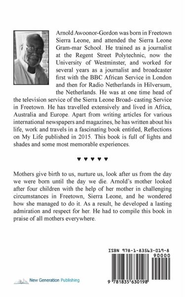 Mothers give birth to us, nurture us, look after us from the day we were born until the day we die. Arnold's mother looked after four children with the help of her mother in challenging circumstances in Freetown, Sierra Leone, and he wondered how she managed to do it. As a result, he developed a lasting admiration and respect for her. He had to compile this book in praise of all mothers everywhere.