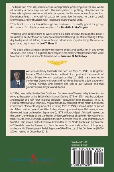 Winston Anthony Richards was born on May 29, 1943, in Kingston, Jamaica, West Indies. He is the third of a triplet and the seventh of eight children. He was baptized on May 20, 1962. He was married to the former Dorothy Brown on June 2, 1974. They have three beautiful adult daughters-Althea, Karolyn, and Sharon; one son-in-law, Everald; and two grandchildren, Tatyana and Rohan. In 1962, Richards graduated from high school and, in 1964, from the Mico Teachers' College. He taught for three years. In 1971, he graduated from West Indies College (Jamaica), now Northern Caribbean University, with a bachelor of theology and an education minor. Richards entered the Andrews University Seventh-day Adventist Theological Seminary, Michigan, that same year (1971) and graduated with a master of divinity on June 2, 1974-the day of his marriage. He completed the doctor of ministry degree in the summer of 1987 at the SDA Seminary at Berrien Springs, Michigan. In 1974, I was called to the East Caribbean Conference of Seventh-day Adventists to serve as the pastor of the British Virgin Islands. During 1975 to 1978, I was the producer and speaker of a half-hour religious program "Treasure of Truth Broadcast". In 1978, I was transferred to St. John, U.S. Virgin Islands, by then part of the North Caribbean Conference of Seventh-day Adventists. During 1980 to 1984, I served as the pastor of six of the churches on Antigua, West Indies, where my interest in conflict management developed. I was ordained on September 2, 1978, in Port-of-Spain, Trinidad. I served on the Union Committee of the Caribbean Union Conference of Seventh-day Adventists from 1982 to 1984. I served as pastor in the USVI between 1988 to 2001 and from 2009 to 2013. I also served on the Executive Committee of the North Caribbean Conference of SDA while I was the Stewardship, Trust Services, Communication, Spirit of Prophecy, and Adventist Development Relief Agency (ADRA) Director of the Conference (2001-2009). I retired in December 2013.