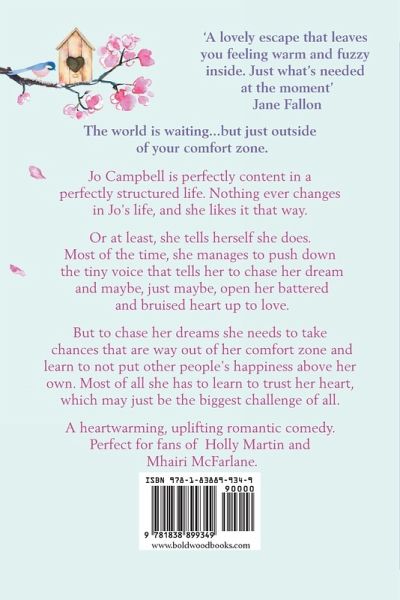 'A lovely escape that leaves you feeling warm and fuzzy inside. Just what's needed at the moment'No1 bestselling author Jane FallonThe world is waiting...but just outside of your comfort zone. Jo Campbell is perfectly content in a perfectly structured life. Nothing ever changes in Jo's life, and she likes it that way. Or at least, she tells herself she does. Most of the time, she manages to push down the tiny voice that tells her to chase her dream and maybe, just maybe, open her battered and bruised heart up to love. But to chase her dreams she needs to take chances that are way out of her comfort zone and learn to not put other people's happiness above her own. Most of all she has to learn to trust her heart, which may just be the biggest challenge of all.