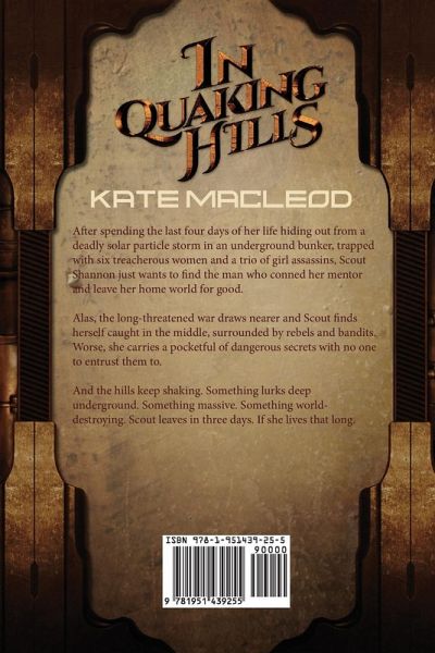 After spending the last four days of her life hiding out from a deadly solar particle storm in an underground bunker, trapped with six treacherous women and a trio of girl assassins, Scout Shannon just wants to find the man who conned her mentor and leave her home world for good.Alas, the long-threatened war draws nearer and Scout finds herself caught in the middle, surrounded by rebels and bandits. Worse, she carries a pocketful of dangerous secrets with no one to entrust them to.And the hills keep shaking. Something lurks deep underground. Something massive. Something world-destroying. Scout leaves in three days. If she lives that long."In Quaking Hills", the sequel to "Under Falling Skies" and the second book in "The Travels of Scout Shannon" series, a young adult science fiction novel for fans of plucky heroines, complicated boys, and loyal dog sidekicks.