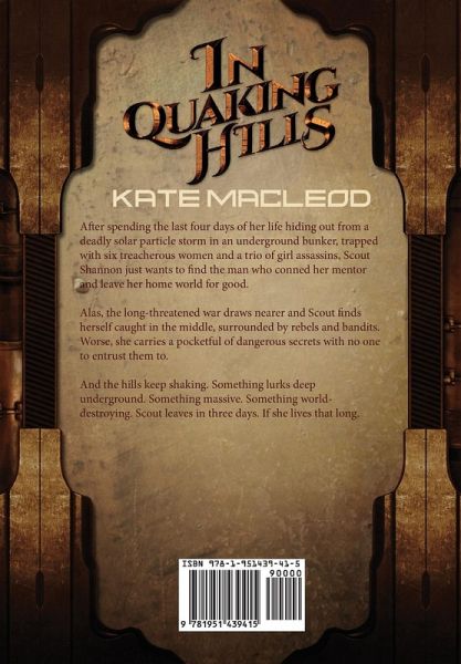 After spending the last four days of her life hiding out from a deadly solar particle storm in an underground bunker, trapped with six treacherous women and a trio of girl assassins, Scout Shannon just wants to find the man who conned her mentor and leave her home world for good.Alas, the long-threatened war draws nearer and Scout finds herself caught in the middle, surrounded by rebels and bandits. Worse, she carries a pocketful of dangerous secrets with no one to entrust them to.And the hills keep shaking. Something lurks deep underground. Something massive. Something world-destroying. Scout leaves in three days. If she lives that long."In Quaking Hills", the sequel to "Under Falling Skies" and the second book in "The Travels of Scout Shannon" series, a young adult science fiction novel for fans of plucky heroines, complicated boys, and loyal dog sidekicks.