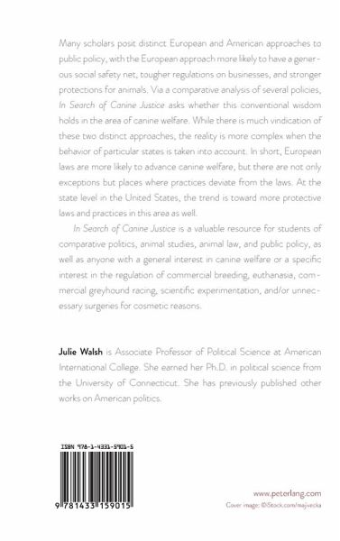 In Search of Canine Justice is a valuable resource for students of comparative politics, animal studies, animal law, and public policy, as well as anyone with a general interestin canine welfare or a specific interest in the regulation of commercial breeding, euthanasia, commercial greyhound racing, scientific experimentation, and/or unnecessary surgeries for cosmetic reasons.