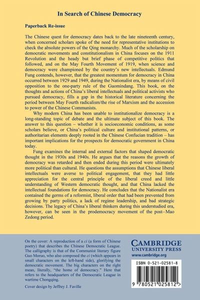 "This book by Edmund S. K. Fung builds on Andrew J. Nathan's Chinese Democracy (1986) with a fascinating history of liberal and democratic thought in the 1930s and 1940s, combined with a detailed study of the various democratic parties and institutions of the period...The book begins with an excellent introduction to the period...This book is at its best as a work of intellectual history...As a major contribution to our understanding of democracy in twentieth century China, it should be of interest to political scientists as much as to historians."