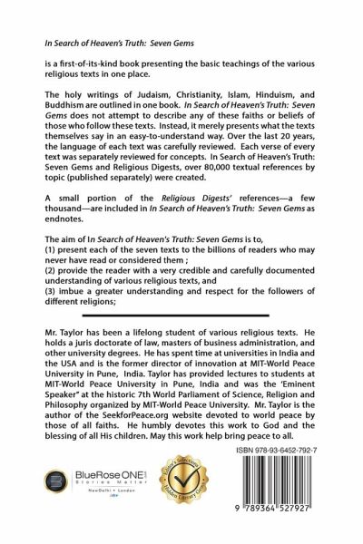 In Search of Heaven's Truth: Seven Gems presents the teachings of Judaism, Christianity, Islam, Hinduism, and Buddhism in one place. Simplified for easy understanding, the book aims to enhance readers' knowledge of various faiths and foster greater respect among followers of different religions.