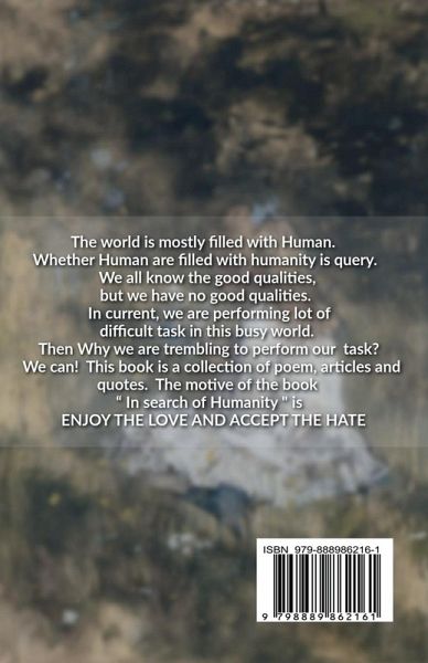 The world is mostly filled with humans. Whether Human are filled with humanity is query. We all know the good qualities, but we have no good qualities. In current, we are performing lot of difficult task in this busy world. Then Why we are trembling to perform our task? We can! This book is a collection of poem, articles and quotes. The motive of the book " In search of Humanity" is ENJOY THE LOVE AND ACCEPT THE HATE