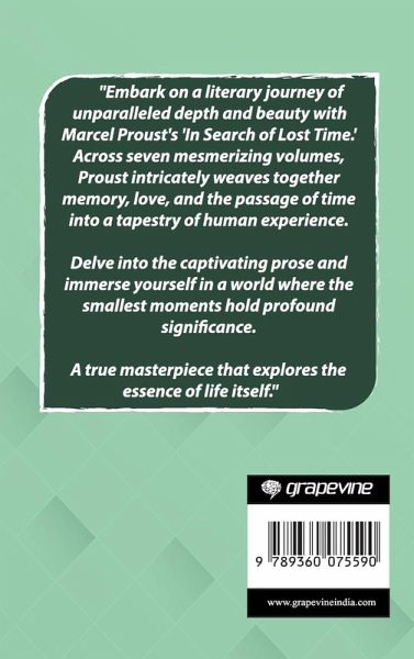 "Embark on a literary journey of unparalleled depth and beauty with Marcel Proust's 'In Search of Lost Time.' Across seven mesmerizing volumes, Proust intricately weaves together memory, love, and the passage of time into a tapestry of human experience. Delve into the captivating prose and immerse yourself in a world where the smallest moments hold profound significance. A true masterpiece that explores the essence of life itself."