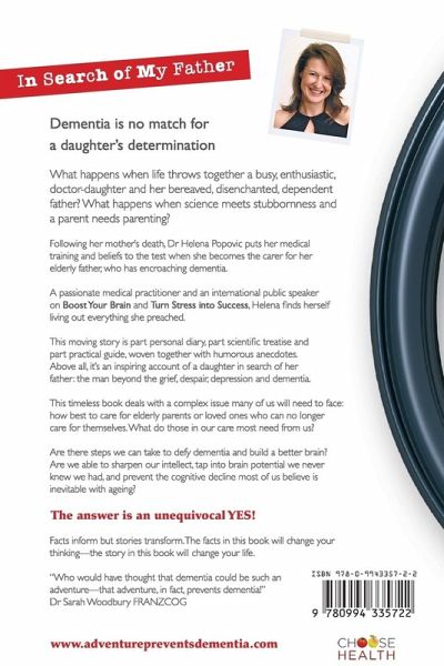 What happens when life throws together a busy, enthusiastic, doctor-daughter and her bereaved, disenchanted, dependent father? What happens when science meets stubbornness and a parent needs parenting? Following her mother's death, Dr Helena Popovic puts her medical training and beliefs to the test when she becomes the carer for her elderly father who has encroaching dementia. A passionate medical practitioner and an international public speaker on Boost Your Brain and Turn Stress into Success, Helena finds herself living out everything she preached. This moving story is part personal diary, part scientific treatise and part practical guide, woven together with humorous anecdotes. Above all, it's an inspiring account of a daughter in search of her father: the man beyond the grief, despair, depression and dementia. This timeless book deals with a complex issue many of us will need to face: how best to care for elderly parents or loved ones who can no longer care for themselves. What do those in our care most need from us? Are there steps we can take to defy dementia and build a better brain? Are we able to sharpen our intellect, tap into brain potential we never knew we had, and prevent the cognitive decline most of us believe is inevitable with ageing? The answer is an unequivocal YES! Facts inform but stories transform. The facts in this book will change your thinking - the story in this book will change your life. 'Who would have thought that dementia could be such an adventure? That adventure, in fact, prevents dementia!' Dr Sarah Woodbury FRANZCOG