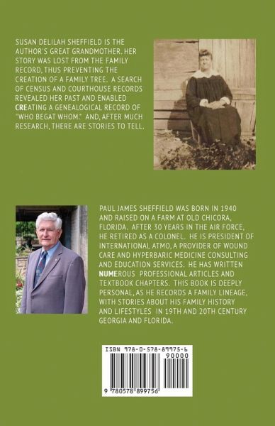 Susan Delilah Sheffield is the author's Great Grandmother. Her story was lost from the family record, thus preventing the creation of a family tree. A search of census and courthouse records revealed her past and enabled creating a genealogical record of "who begat whom." and, after much research, there are stories to tell. In our search for Susan, we found that there were several notable Sheffields, and much has been written on the Sheffield family. Freeman's parents, Bryant and Nancy Paine Sheffield were pioneers in Early County, Georgia. Several cousins were politicians, lawyers, and physicians. Freeman's brother, Seaborn, was one of the richest men in West Georgia. Susan's father, Freeman, was absent from most documents. A census record listed Susan's mother, Celia, as "head of household and running the farm." Her father's occupation was "none," with the reason given as "fitified." Then, a brief death notice in the Atlanta Constitution newspaper indicated he "had one of his fits and fell into the fire." Sheffield; Shuffield; Shuffill; Shuffild; Sheffel; Shuffel; Sherfiel; Shuffer; Shuffiel