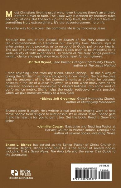 In Search of the Holy paints a picture of a full and complete life-a life that lives up to our craziest childhood dreams. But rather than freewheeling pursuit of some individual ideal, the hero life comes from an old concept, freshly relevant again today, called "holiness." When a lot of regular people think about being "holy", they think about keeping the Ten Commandments. But the Ten Commandments are impossible. If the self-proclaimed holy rollers can't keep God's commandments, regular people don't have a chance. The good news is that in the Bible, being "holy" doesn't mean being pious or "good enough." It means to be "set apart for a special purpose". The antonym not profane or obscene; it is "ordinary." And we don't get there by following a set of rules, but by following the One who was there when the rules were written, Jesus. What makes life exciting is who we worship, what we believe, and how we live-all of these are connected. Following Jesus turns life from ordinary to extraordinary as His love and grace change us from the inside out.