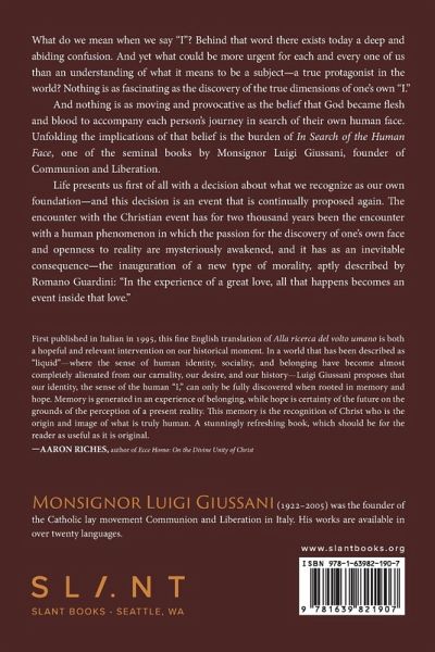 What do we mean when we say "I"? Behind that word there exists today a deep and abiding confusion. And yet what could be more urgent for each and every one of us than an understanding of what it means to be a subject-a true protagonist in the world? Nothing is as fascinating as the discovery of the true dimensions of one's own "I." And nothing is as moving and provocative as the belief that God became flesh and blood to accompany each person's journey in search of their own human face. Unfolding the implications of that belief is the burden of In Search of the Human Face, one of the seminal books by Monsignor Luigi Giussani, founder of Communion and Liberation. Life presents us first of all with a decision about what we recognize as our own foundation-and this decision is an event that is continually proposed again. The encounter with the Christian event has for two thousand years been the encounter with a human phenomenon in which the passion for the discovery of one's own face and openness to reality are mysteriously awakened, and it has as an inevitable consequence-the inauguration of a new type of morality, aptly described by Romano Guardini: "In the experience of a great love, all that happens becomes an event inside that love."