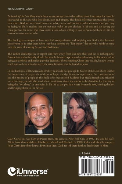 In Search of the Lost Sheep was written to encourage those who believe there is no hope for them in this world, to the one who feels alone, hurt and abused. This book references scripture that prove how much God loves everyone no matter who you are and no matter what circumstances you may be facing in life. It teaches that we may not make the best choices in life and end up paying the consequences for it, but that there is still a God who is willing to take us back and shape us into the person we were meant to be. This book gives examples of how merciful, compassionate and forgiving our God is that he sends his servants to go after them when they have become the "lost sheep:" the one who needs to come into the arms of a loving Savior, our Redeemer. The author challenges us to repent and turn away from our sins that lead us to unhappiness, destruction and ultimately, death. Because he himself experienced much misery in life as a result of being an alcoholic and making unwise decisions, after accepting Christ into his life, he now lives to reach out to those who also need the same freedom that he found in Jesus. In this book you will find reasons of why you should not give up. In Search of the Lost Sheep teaches the importance of prayer, the evidence of hope, the significance of repentance, the consequence of sin, the history of people in the Bible who encountered hardship but breakthrough and triumph for repenting; you will also read a brief testimony about the author as he describes his journey of being the "lost sheep" at one point in his life to the position where he stands now, seeking the lost and bringing them to the Savior.