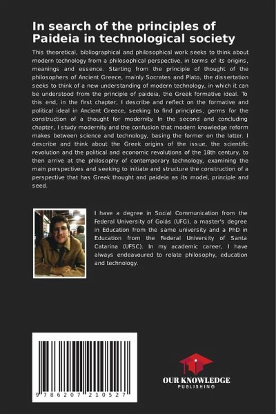 This theoretical, bibliographical and philosophical work seeks to think about modern technology from a philosophical perspective, in terms of its origins, meanings and essence. Starting from the principle of thought of the philosophers of Ancient Greece, mainly Socrates and Plato, the dissertation seeks to think of a new understanding of modern technology, in which it can be understood from the principle of paideia, the Greek formative ideal. To this end, in the first chapter, I describe and reflect on the formative and political ideal in Ancient Greece, seeking to find principles, germs for the construction of a thought for modernity. In the second and concluding chapter, I study modernity and the confusion that modern knowledge reform makes between science and technology, basing the former on the latter. I describe and think about the Greek origins of the issue, the scientific revolution and the political and economic revolutions of the 18th century, to then arrive at the philosophy of contemporary technology, examining the main perspectives and seeking to initiate and structure the construction of a perspective that has Greek thought and paideia as its model, principle and seed.