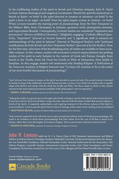 In his trailblazing studies of the spirit in Jewish and Christian antiquity, John R. (Jack) Levison shatters theological and exegetical taxonomies. Should the spirit be understood as breath or Spirit--or both? Is the spirit directed to creation or salvation--or both? Is the spirit a force or an angel--or both? Does the spirit inspire ecstasy or wisdom--or both? When Levison transfers the starting point of pneumatology from the New Testament to the Hebrew Bible, from Christianity to Judaism, questions swell, assumptions detonate, and expectations flourish. Consequently, Levison's studies are considered ""impressive and provocative"" (Review of Biblical Literature), ""delightful, engaging"" (Catholic Biblical Quarterly), ""impressive"" (Journal of Ancient Judaism) and ""a significant shift in research on understandings of the spirit in Judaism"" (Journal of Theological Studies), with ""profound ramifications for both Jewish and New Testament Studies"" (Journal of Jewish Studies). Now, for the first time, selections of his breathtaking array of studies are available in three accessible volumes. In this volume, you will encounter Levison's unprecedented and probing studies of the spirit in early Judaism in the context of Greek and Roman thought, from Sirach to the Tosefta, from the Dead Sea Scrolls to Philo of Alexandria, from Judith to Josephus. As they engage, readers will understand why Reading Religion: A Publication of the American Academy of Religion forecasts that ""Levison will continue to be at the center of our most fruitful discussions of pneumatology.""