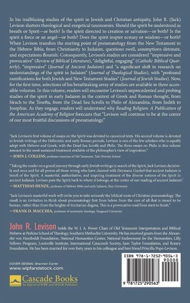 In his trailblazing studies of the spirit in Jewish and Christian antiquity, John R. (Jack) Levison shatters theological and exegetical taxonomies. Should the spirit be understood as breath or Spirit--or both? Is the spirit directed to creation or salvation--or both? Is the spirit a force or an angel--or both? Does the spirit inspire ecstasy or wisdom--or both? When Levison transfers the starting point of pneumatology from the New Testament to the Hebrew Bible, from Christianity to Judaism, questions swell, assumptions detonate, and expectations flourish. Consequently, Levison's studies are considered ""impressive and provocative"" (Review of Biblical Literature), ""delightful, engaging"" (Catholic Biblical Quarterly), ""impressive"" (Journal of Ancient Judaism) and ""a significant shift in research on understandings of the spirit in Judaism"" (Journal of Theological Studies), with ""profound ramifications for both Jewish and New Testament Studies"" (Journal of Jewish Studies). Now, for the first time, selections of his breathtaking array of studies are available in three accessible volumes. In this volume, you will encounter Levison's unprecedented and probing studies of the spirit in early Judaism in the context of Greek and Roman thought, from Sirach to the Tosefta, from the Dead Sea Scrolls to Philo of Alexandria, from Judith to Josephus. As they engage, readers will understand why Reading Religion: A Publication of the American Academy of Religion forecasts that ""Levison will continue to be at the center of our most fruitful discussions of pneumatology.""