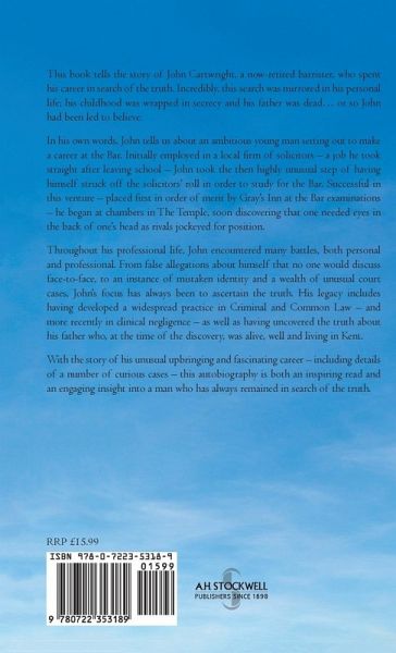 This book tells the story of John Cartwright, a now-retired Queen's Council barrister, who spent his career in search of the truth. Incredibly, this search was mirrored in his personal life; his childhood was wrapped in secrecy and his father was dead... or so John had been led to believe.In his own words, John tells us about an ambitious young man setting out to make a career at the Bar. Initially employed in a local firm of solicitors - a job he took straight after leaving school - John took the then highly unusual step of having himself struck off the solicitors' roll in order to study for the Bar. Successful in this venture - placed first in order of merit by Gray's Inn at the Bar examinations - he began at chambers in The Temple, soon discovering that one needed eyes in the back of one's head as rivals jockeyed for position.Throughout his professional life, John encountered many battles, both personal and professional. From false allegations about himself that no one would discuss face-to-face, to an instance of mistaken identity and a wealth of unusual court cases, John's focus has always been to ascertain the truth. His legacy includes having developed a widespread practice in Criminal and Common Law - and more recently in clinical negligence - as well as having uncovered the truth about his father who, at the time of the discovery, was alive, well and living in Kent.With the story of his unusual upbringing and fascinating career - including details of a number of curious cases - this autobiography is both an inspiring read and an engaging insight into a man who has always remained in search of the truth.