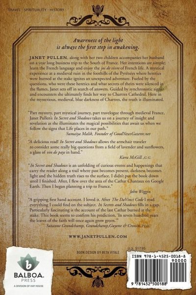Janet Pullen, along with her two children accompanies her husband on a year long business trip to the South of France. Her intentions are simple; learn the French language and enjoy the joi de vivre of French life. A mystical experience at a medieval ruin in the foothills of the Pyrnes where heretics were burned at the stake ignites an unexpected adventure. Fueled by the questions, who were these heretics and what secrets of theirs were silenced in the flames, Janet sets off in search of answers. Guided by synchronistic signs and encounters she ultimately finds her way to Chartres Cathedral. Here in the mysterious, medieval, blue darkness of Chartres, the truth is illuminated.