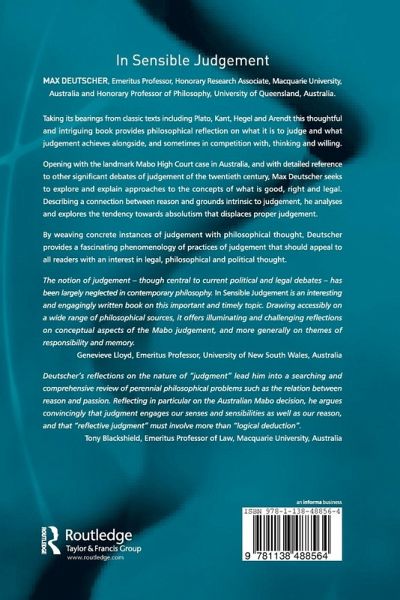Opening with the landmark Mabo High Court case in Australia and with detailed reference to other significant debates of judgement of the twentieth century Max Deutscher seeks to explore and explain approaches to the concepts of what is good, right and legal. Describing a connection between reason and grounds intrinsic to judgement he analyses and explores the tendency towards absolutism that displaces proper judgement.