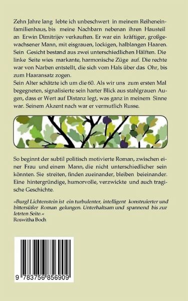 Ein subtil, politisch motivierter Roman, zwischen einer Frau und einem Mann, die nicht unterschiedlicher sein könnten. Sie kämpfen miteinander, finden zueinander und bleiben schliesslich beieinander. Eine hintergründige, humorvolle, verzwickte, aber auch tragische Geschichte.