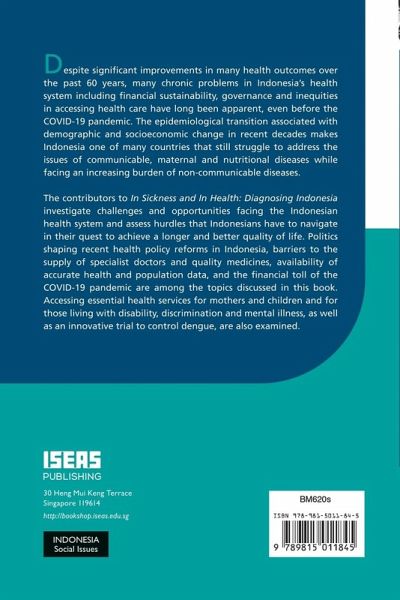 Despite significant improvements in many health outcomes over the past 60 years, many chronic problems in Indonesia's health system including financial sustainability, governance and inequities in accessing health care have long been apparent, even before the COVID-19 pandemic. The epidemiological transition associated with demographic and socioeconomic change in recent decades makes Indonesia one of many countries that still struggle to address the issues of communicable, maternal and nutritional diseases while facing an increasing burden of non-communicable diseases. The contributors to In Sickness and In Health: Diagnosing Indonesia investigate challenges and opportunities facing the Indonesian health system and assess hurdles that Indonesians have to navigate in their quest to achieve a longer and better quality of life. Politics shaping recent health policy reforms in Indonesia, barriers to the supply of specialist doctors and quality medicines, availability of accurate health and population data, and the financial toll of the COVID-19 pandemic are among the topics discussed in this book. Accessing essential health services for mothers and children and for those living with disability, discrimination and mental illness, as well as an innovative trial to control dengue, are also examined.