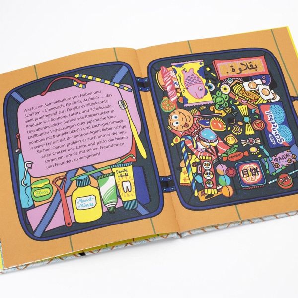 Roberta Schneider erzählt die Geschichte in schöner und angenehm zu lesender Sprache, die für Kinder gut geeignet ist, da sie gut verständlich und doch anregend daher kommt. Besonders gut gefallen mir persönlich Formulierungen, wie „Herr Walis nennt es rund um die Uhr. Das klingt für ihn ein bisschen wie rund um die Welt, und das ist es ja auch.“ Aber auch die einzelnen Texte zu den verschiedenen Koffern gefallen mir. Sie sind kreativ, sehr abwechslungsreich, teilweise ergreifend, dann laden sie zum Schmunzeln ein oder verlocken zum Träumen.