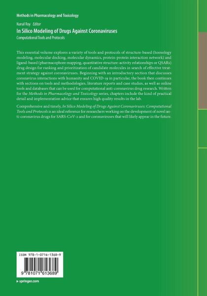 Comprehensive and timely, In Silico Modeling ofDrugs Against Coronaviruses: Computational Tools and Protocols is an ideal reference for researchers working on the development of novel anti-coronavirus drugs for SARS-CoV-2 and for coronaviruses that will likely appear in the future.
