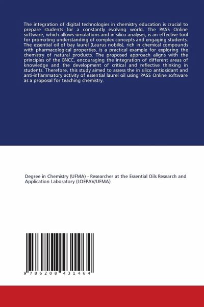 The integration of digital technologies in chemistry education is crucial to prepare students for a constantly evolving world. The PASS Online software, which allows simulations and in silico analyses, is an effective tool for promoting understanding of complex concepts and engaging students. The essential oil of bay laurel (Laurus nobilis), rich in chemical compounds with pharmacological properties, is a practical example for exploring the chemistry of natural products. The proposed approach aligns with the principles of the BNCC, encouraging the integration of different areas of knowledge and the development of critical and reflective thinking in students. Therefore, this study aimed to assess the in silico antioxidant and anti-inflammatory activity of essential laurel oil using PASS Online software as a proposal for teaching chemistry.