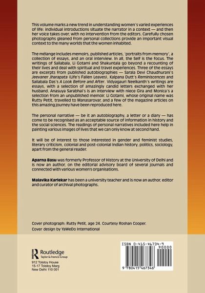 This volume will mark a new trend in dealing with women's varied experiences of life: individual introductions situate the narrator in a context - and then her voice takes over, with no intervention from the editors (except to provide footnotes wherever necessary). The personal narrative - be it an autobiography, a letter or a diary - has come to be recognised as an acceptable data source in history and social science. Literary critics and students of literature too find considerable use in reading the personal writings of poets, fiction and crime writers. In this book, readings of personal narratives help in painting various images of lives that we can only know at second hand. The mélange includes memoirs, published articles, 'portraits from memory', a collection of essays , and an oral interview. In all, the self was the focus. The writings of Sailabala, Li Gotami, and Shakuntala go beyond a recounting of their lives and deal with spiritual and travel experiences. Three of the essays are excerpts from published autobiographies - Sarala Devi Chaudhurani's Jeevaner Jharapata (Life's Fallen Leaves), Kalpana Dutt's Reminiscences and Sailabala Das's A Look Before and After. Vidyagauri Nilkanth's writings are essays and a selection of amazingly candid letters exchanged with her husband. Anasuya Sarabahi's is an interview in Gujarati with niece Gira and Monica's a selection from an unpublished memoir. Li Gotami, whose original name was Rutty Petit, travelled to Manasarovar, and a few of the magazine articles on this amazing journey have been reproduced here. Whichever form a woman chooses, writing about her self, is emancipatory; she may be a person who has so far received little attention from the family or the world. Or she may be one who is a well-known public figure - yet little is known about her childhood. So she writes about many selves - life is not about one coherent self but rather one of many lives and experiences. In other words, the pen gives woman agency - she moves out from under the shroud of victim hood and becomes one who can write about her lives. The volume also has some carefully chosen photographs, gleaned from personal collections, so far a neglected area of use in academic study. These provide an important visual context to the many worlds that the women inhabited.