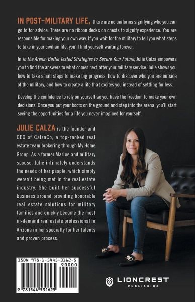 In post-military life, there are no uniforms signifying who you can go to for advice. There are no ribbon decks on chests to signify experience. You are responsible for making your own way. If you wait for the military to tell you what steps to take in your civilian life, you'll find yourself waiting forever. In In the Arena: Battle Tested Strategies to Secure Your Future, Julie Calza empowers you to find the answers to what comes next after your military service. Julie shows you how to take small steps to make big progress, how to discover who you are outside of the military, and how to create a life that excites you instead of settling for less. Develop the confidence to rely on yourself so you have the freedom to make your own decisions. Once you put your boots on the ground and step into the arena, you'll start seeing the opportunities for a life you never imagined for yourself.