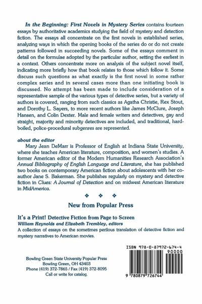 This volume contains fourteen essays by authoritative academics studying the field of mystery and detective fiction. The essays all concentrate on the first novels in established series, analyzing ways in which the opening books of the series do or do not create patterns followed in succeeding novels.