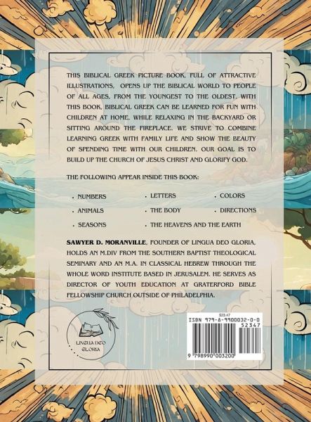 This Biblical Greek picture book, full of attractive illustrations, opens up the biblical world to people of all ages, from the youngest to the oldest. With this book, Biblical Greek can be learned for fun with children at home, while relaxing in the backyard or sitting around the fireplace. We strive to combine learning Greek with family life and show the beauty of spending time with our children. Our goal is to build up the church of Jesus Christ and Glorify God.