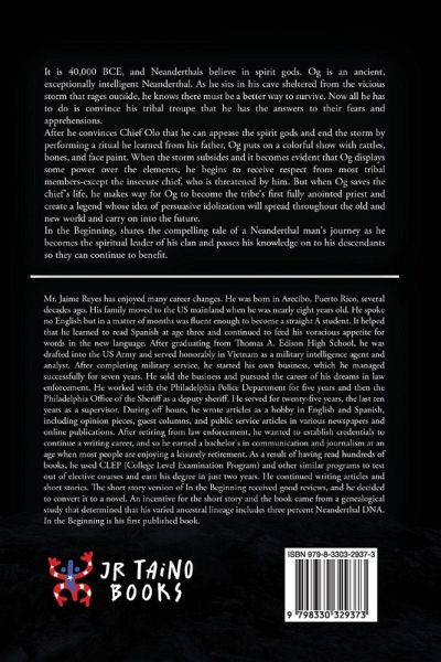 It is 40,000 BCE, and Neanderthals believe in spirit gods. Og is an ancient, exceptionally intelligent Neanderthal. As he sits in his cave sheltered from the vicious storm that rages outside, he knows there must be a better way to survive. Now all he has to do is convince his tribal troupe that he has the answers to their fears and apprehensions. After he convinces Chief Olo that he can appease the spirit gods and end the storm by performing a ritual he learned from his father, Og puts on a colorful show with rattles, bones, and face paint. When the storm subsides and it becomes evident that Og displays some power over the elements, he begins to receive respect from most tribal members-except the insecure chief, who is threatened by him. But when Og saves the chief's life, he makes way for Og to become the tribe's first fully anointed priest and create a legend whose idea of persuasive idolization will spread throughout the old and new world and carry on into the future. In the Beginning, shares the compelling tale of a Neanderthal man's journey as he becomes the spiritual leader of his clan and passes his knowledge on to his descendants so they can continue to benefit.