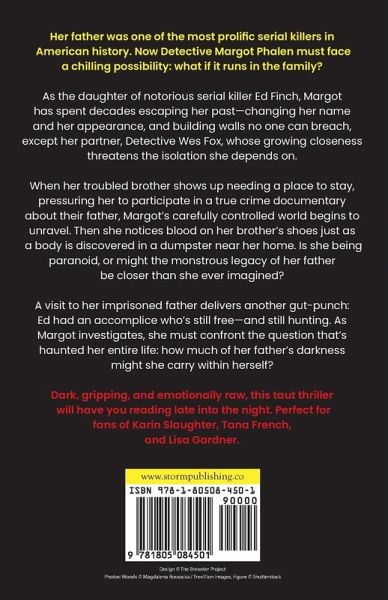 Her father was one of the most prolific serial killers in American history. Now Detective Margot Phalen must face a chilling possibility: what if it runs in the family? As the daughter of notorious serial killer Ed Finch, Margot has spent decades escaping her past--changing her name, her appearance, and building walls no one can breach, except her partner, Detective Wes Fox, whose growing closeness threatens the isolation she depends on. When her troubled brother shows up needing a place to stay, pressuring her to participate in a true crime documentary about their father, Margot's carefully controlled world begins to unravel. Then she notices blood on her brother's shoes just as a body is discovered in a dumpster near her home. Is she being paranoid, or might the monstrous legacy of her father be closer than she ever imagined? A visit to her imprisoned father delivers another gut-punch: Ed had an accomplice who's still free--and still hunting. As Margot investigates, she must confront the question that's haunted her entire life: how much of her father's darkness might she carry within herself? Dark, gripping, and emotionally raw, this taut thriller will have you reading late into the night. Perfect for fans of Karin Slaughter, Tana French, and Lisa Gardner.