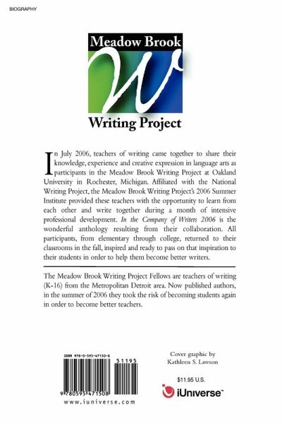 In July 2006, teachers of writing came together to share their knowledge, experience and creative expression in language arts as participants in the Meadow Brook Writing Project at Oakland University in Rochester, Michigan. Affiliated with the National Writing Project, the Meadow Brook Writing Project's 2006 Summer Institute provided these teachers with the opportunity to learn from each other and write together during a month of intensive professional development. In the Company of Writers 2006 is the wonderful anthology resulting from their collaboration. All participants, from elementary through college, returned to their classrooms in the fall, inspired and ready to pass on that inspiration to their students in order to help them become better writers.