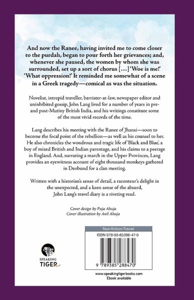 Novelist, intrepid traveller, barrister-at-law, newspaper editor and uninhibited gossip, John Lang lived for a number of years in pre- and post-Mutiny British India, and his writings constitute some of the most vivid records of the time. Lang describes his meeting with the Ranee of Jhansi-soon to become the focal point of the rebellion-as well as his counsel to her; he also chronicles the wondrous and tragic life of 'Black and Blue', a boy of mixed British and Indian parentage, and his claims to a peerage in England. And, narrating a march in the Upper Provinces, Lang provides an eyewitness account of eight thousand monkeys, gathered in Deobund for a clan meeting. Written with a historian's sense of detail, a raconteur's delight in the unexpected, and a keen sense of the absurd, John Lang's travel diary is a riveting read.