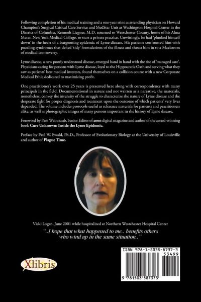 Following completion of his medical training and a one-year stint as attending physician on Howard Champion's Surgical Critical Care Service and MedStar Unit at Washington Hospital Center in the District of Columbia, Kenneth Liegner, M.D. returned to Westchester County, home of his Alma Mater, New York Medical College, to start a private practice. Unwittingly, he had 'plunked himself down' in the heart of a burgeoning epidemic of Lyme disease. His patients confronted him with puzzling syndromes that defied 'tidy' formulations of the illness and thrust him in to a Maelstrom of medical controversy. Lyme disease, a new poorly understood disease, emerged hand in hand with the rise 'managed care'. Physicians caring for persons with Lyme disease, loyal to the Hippocratic Oath and serving what they saw as patients' best medical interests, found themselves on a collision course with a new Corporate Medical Ethic dedicated to maximizing profit. One practitioner's work over 25 years is presented here along with correspondence with many principals in the field. Documentational in nature and not written as a narrative, the materials, nonetheless, convey the intensity of the struggle to characterize the nature of Lyme disease and the desperate fight for proper diagnosis and treatment upon the outcome of which patients' very lives depended. The volume includes protocols useful as reference materials for patients and practitioners alike, as well as photographic images of many persons important in the history of Lyme disease. Foreword by Pam Weintraub, Senior Editor of aeon digital magazine and author of award-winning book Cure Unknown: Inside the Lyme Epidemic. Preface by Paul W. Ewald, Professor of Evolutionary Biology at the University of Louisville and author of Plague Time.