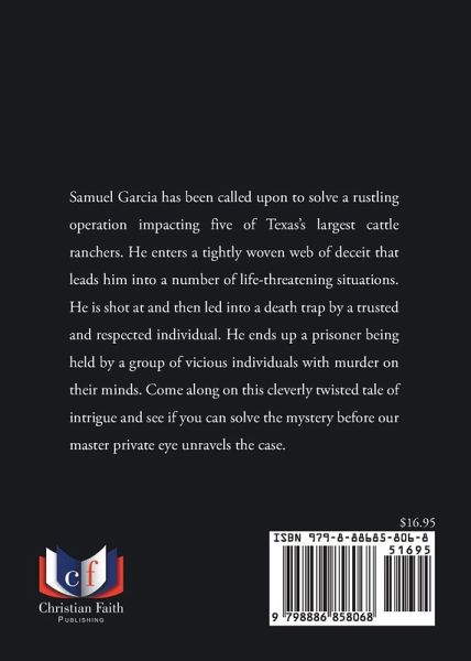 Samuel Garcia has been called upon to solve a rustling operation impacting five of Texas's largest cattle ranchers. He enters a tightly woven web of deceit that leads him into a number of life-threatening situations. He is shot at and then led into a death trap by a trusted and respected individual. He ends up a prisoner being held by a group of vicious individuals with murder on their minds. Come along on this cleverly twisted tale of intrigue and see if you can solve the mystery before our master private eye unravels the case.