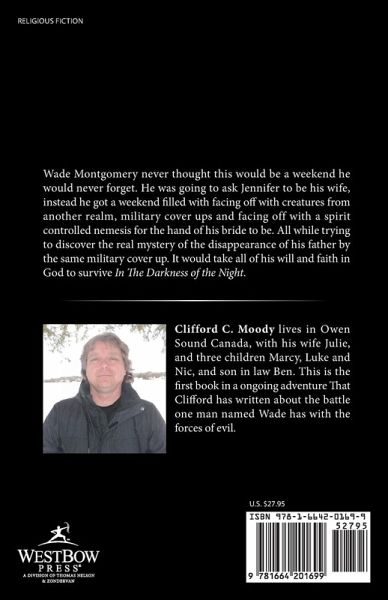 Wade Montgomery never thought this would be a weekend he would never forget. He was going to ask Jennifer to be his wife, instead he got a weekend filled with facing off with creatures from another realm, military cover ups and facing off with a spirit controlled nemesis for the hand of his bride to be. All while trying to discover the real mystery of the disappearance of his father by the same military cover up. It would take all of his will and faith in God to survive In The Darkness of the Night.