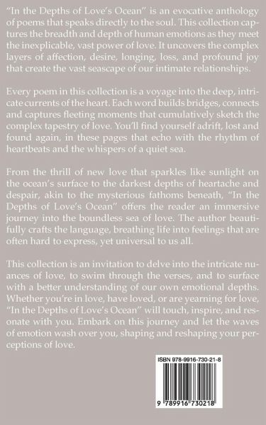 "In the Depths of Love's Ocean" is an evocative anthology of poems that speaks directly to the soul. This collection captures the breadth and depth of human emotions as they meet the inexplicable, vast power of love. It uncovers the complex layers of affection, desire, longing, loss, and profound joy that create the vast seascape of our intimate relationships.Every poem in this collection is a voyage into the deep, intricate currents of the heart. Each word builds bridges, connects and captures fleeting moments that cumulatively sketch the complex tapestry of love. You'll find yourself adrift, lost and found again, in these pages that echo with the rhythm of heartbeats and the whispers of a quiet sea.From the thrill of new love that sparkles like sunlight on the ocean's surface to the darkest depths of heartache and despair, akin to the mysterious fathoms beneath, "In the Depths of Love's Ocean" offers the reader an immersive journey into the boundless sea of love. The author beautifully crafts the language, breathing life into feelings that are often hard to express, yet universal to us all.This collection is an invitation to delve into the intricate nuances of love, to swim through the verses, and to surface with a better understanding of our own emotional depths. Whether you're in love, have loved, or are yearning for love, "In the Depths of Love's Ocean" will touch, inspire, and resonate with you. Embark on this journey and let the waves of emotion wash over you, shaping and reshaping your perceptions of love.Swan's poetry reflects her belief in the interconnectedness of all living things, and her work often explores themes of spirituality, mindfulness, and the power of the natural world to heal and rejuvenate the human spirit.A passionate advocate for environmental conservation and sustainability, Swan uses her poetry to raise awareness about the pressing issues facing our planet today. Through her words, she seeks to inspire others to take action and make a positive impact on the world around them.With her gentle spirit and profound insight, Swan Charm's poetry is a testament to the beauty and power of the natural world, and a reminder of our responsibility to cherish and protect it for generations to come. The Gift that Touches - straight to the Core. Copyright (c) 2023 Swan Charm Publishing