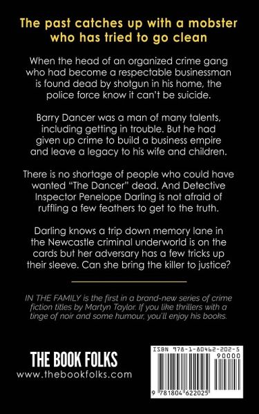 The past catches up with a mobster who has tried to go clean. When the head of an organized crime gang who had become a respectable businessman is found dead by shotgun in his home, the police force know it can't be suicide. Barry Dancer was a man of many talents, including getting in trouble. But he had given up crime to build a business empire and leave a legacy to his wife and children. There is no shortage of people who could have wanted "The Dancer" dead. And Detective Inspector Penelope Darling is not afraid of ruffling a few feathers to get to the truth. Darling knows a trip down memory lane in the Newcastle criminal underworld is on the cards but her adversary has a few tricks up their sleeve. Can she bring the killer to justice? IN THE FAMILY is the first in a brand-new series of crime fiction titles by Martyn Taylor. If you like thrillers with a tinge of noir and some humour, you'll enjoy his books. Look out for MEN IN SUITS, the second book in this series.