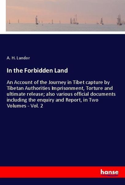 In the Forbidden Land - An Account of the Journey in Tibet capture by Tibetan Authorities Imprisonment, Torture and ultimate release; also various official documents including the enquiry and Report, in Two Volumes - Vol. 2 is an unchanged, high-quality reprint of the original edition of 1898.Hansebooks is editor of the literature on different topic areas such as research and science, travel and expeditions, cooking and nutrition, medicine, and other genres. As a publisher we focus on the preservation of historical literature. Many works of historical writers and scientists are available today as antiques only. Hansebooks newly publishes these books and contributes to the preservation of literature which has become rare and historical knowledge for the future.