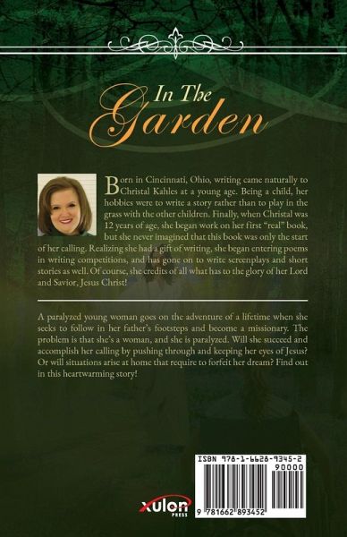 A paralyzed young woman goes on the adventure of a lifetime when she seeks to follow in her father's footsteps and become a missionary. The problem is that she's a woman, and she is paralyzed. Will she succeed and accomplish her calling by pushing through and keeping her eyes of Jesus? Or will situations arise at home that require to forfeit her dream? Find out in this heartwarming story! Born in Cincinnati, Ohio, writing came naturally to Christal Kahles at a young age. Being a child, her hobbies were to write a story rather than to play in the grass with the other children. Finally, when Christal was 12 years of age, she began work on her first "real" book, but she never imagined that this book was only the start of her calling. Realizing she had a gift of writing, she began entering poems in writing competitions, and has gone on to write screenplays and short stories as well. Of course, she credits of all what has to the glory of her Lord and Savior, Jesus Christ!
