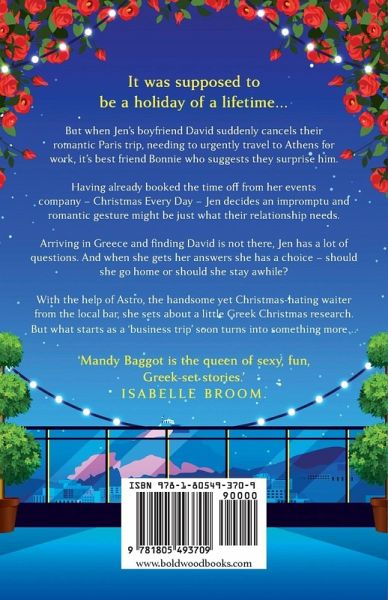 It was supposed to be a holiday of a lifetime... But when Jen's boyfriend David suddenly cancels their romantic Paris trip, needing to urgently travel to Athens for work, it's best friend Bonnie who suggests they surprise him. Having already booked the time off from her events company - Christmas Every Day - Jen decides an impromptu and romantic gesture might be just what their relationship needs. Arriving in Greece and finding David is not there, Jen has a lot of questions. And when she gets her answers she has a choice - should she go home or should she stay a while? With the help of Astro, the handsome yet Christmas-hating waiter from the local bar, she sets about a little Greek Christmas research. But what starts as a 'business trip' soon turns into something more... Praise for Mandy Baggot: 'This book is so cute. I love Eve and Gianni so much. I recommend this book to people who want a good summer holiday romance read' ¿¿¿¿¿¿¿¿¿¿ Reader Review 'What a truly stunning read this book is and Mandy never fails to disappoint. Heart warming and beautifully written' ¿¿¿¿¿¿¿¿¿¿ Reader Review 'This gorgeous summer read has everything you need to cast your cares aside and simply bask in the warmth of the Greek sun, warm characters and totally absorbing storyline. Love it!' ¿¿¿¿¿¿¿¿¿¿ Reader Review 'What a bountiful banquet this book is!'** NetGalley Reviewer** 'Beautifully written, this lovely story made me smile, laugh, and left me with a lovely, warm glow.' NetGalley Reviewer 'A delightful read from start to end; one that left me smiling long after I finished the last chapter.' NetGalley Reviewer 'This book is heart-warming and hilarious. I would give it six stars if I could! NetGalley Reviewer 'Tempting, tantalising and tasty. This book was a one-sitting read for me.' NetGalley Reviewer