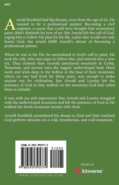 Arnold Stanfield had big dreams, even from the age of six. He wanted to be a professional painter. Becoming a civil engineer, a career that could have brought him momentary gains, didn't diminish his love of art. But Arnold felt the call of God, urging him to follow His plan for his life, a plan that would not only honor God, but would fulfill Arnold's dream of becoming a professional painter. When he was in his 30s, he surrendered to God's call to paint. He took his wife, who was eager to follow him, and entered into a new era. They claimed their recently purchased mountain in Cosby, Tennessee, and moved onto the rugged, undeveloped land. Hard work and trials deep in the hollow at the base of their mountain, where no one had lived for thirty years, was enough to make anyone run for civilization. But Arnold and Loretta felt the presence of God as they walked on the mountain God had called them to inhabit. It was with joy and expectation that Arnold and Loretta struggled with the undeveloped mountain and felt the presence of God as He walked the harsh mountain terrain with them. Arnold Stanfield surrendered his dream to God and then watched God perform miracles on a cold, treacherous, and void mountain.