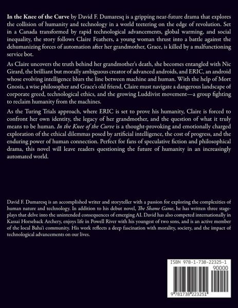 In the Knee of the Curve by David F. Dumaresq is a gripping near-future drama that explores the collision of humanity and technology in a world teetering on the edge of revolution. Set in a Canada transformed by rapid technological advancements, global warming, and social inequality, the story follows Claire Feathers, a young woman thrust into a battle against the dehumanizing forces of automation after her grandmother, Grace, is killed by a malfunctioning service bot. As Claire uncovers the truth behind her grandmother's death, she becomes entangled with Nic Girard, the brilliant but morally ambiguous creator of advanced androids, and ERIC, an android whose evolving intelligence blurs the line between machine and human. With the help of Mort Gnosis, a wise philosopher and Grace's old friend, Claire must navigate a dangerous landscape of corporate greed, technological ethics, and the growing Luddivist movement-a group fighting to reclaim humanity from the machines. As the Turing Trials approach, where ERIC is set to prove his humanity, Claire is forced to confront her own identity, the legacy of her grandmother, and the question of what it truly means to be human. In the Knee of the Curve is a thought-provoking and emotionally charged exploration of the ethical dilemmas posed by artificial intelligence, the cost of progress, and the enduring power of human connection. Perfect for fans of speculative fiction and philosophical drama, this novel will leave readers questioning the future of humanity in an increasingly automated world.