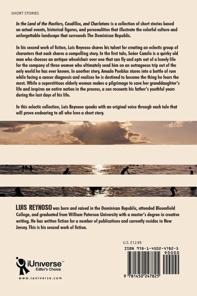In the Land of the Hustlers, Caudillos, and Charlatans is a collection of short stories based on actual events, historical figures, and personalities that illustrate the colorful culture and unforgettable landscape that surrounds The Dominican Republic. In his second work of fiction, Luis Reynoso shares his talent for creating an eclectic group of characters that each shares a compelling story. In the first tale, Señor Camilo is a quirky old man who chooses an antique wheelchair over one that can fly and opts out of a lonely life for the company of three women who ultimately send him on an outrageous trip out of the only world he has ever known. In another story, Amado Pueblas stares into a bottle of rum while facing a cancer diagnosis and realizes he is destined to become the thing he fears the most. While a superstitious elderly woman makes a pilgrimage to save her granddaughter's life and inspires an entire nation in the process, a son recounts his father's youthful years during the last days of his life. In this eclectic collection, Luis Reynoso speaks with an original voice through each tale that will prove endearing to all who love a short story.