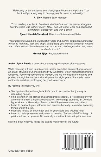 Jackie Chung, CFA, is a senior executive and leadership coach with 20+ years of corporate accomplishments in business strategy and new market development. She has worked in Canada, the UK, France, and Hong Kong for Morgan Stanley, TD, and DuPont, among others. Jackie earned her MBA from INSEAD and her Diploma in Coaching from NYU. She is a fellow of Harvard Medical School's Institute of Coaching. Over a decade ago, while helping a friend, Jackie suffered an attack of Multiple Chemical Sensitivity Syndrome, hampering her brain functions. Thus began a ten-year saga. Today Jackie is grateful to have emerged triumphant to start a new beginning. She feels called to pass on hope and light and her learning to help others rebuild themselves.