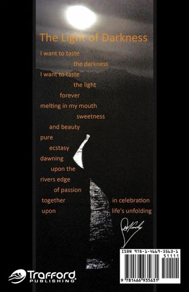 The Light of Darkness I want to taste the darkness I want to taste the light forever melting in my mouth sweetness and beauty pure ecstasy dawning upon the rivers edge of passion together in celebration upon life's unfolding